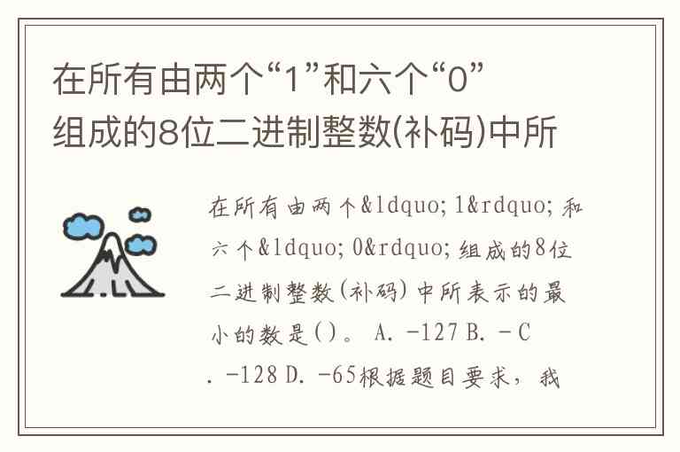 根据题目要求,我们需要找出由 两个“1”和六个“0” 组成的 8位二进制补码 中所表示的最小的数。