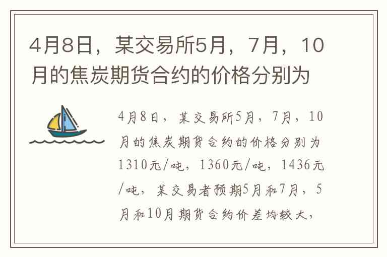 4月8日,某交易所5月,7月,10月的焦炭期货合约的价格分别为1310元/吨,1360元/吨,1436元/吨,某交易者预期5月和7月,5月和10月期货合约价差均较大,则交易者应()。 A. 买入5月焦炭期货合约,卖出7月焦炭期货合约 B. 卖出5月焦炭期货合约,买入7月焦炭期货合约 C. 买入7月焦炭期货合约,卖出10月焦炭期货合约 D. 买入5月焦炭期货合约,卖出10月焦炭期货合约