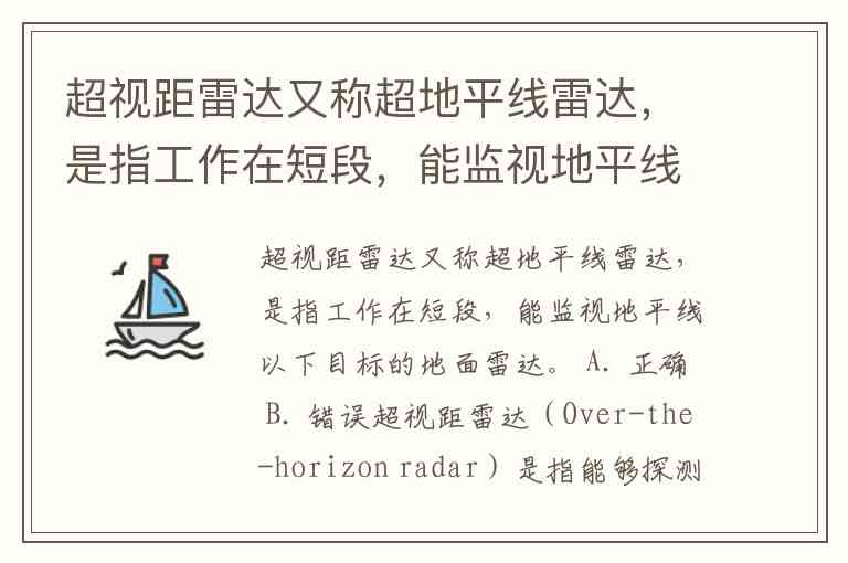超视距雷达(Over-the-horizon radar)是指能够探测和监视地平线以下目标的雷达系统,通常通过电磁波的反射、折射或弯曲来实现超出视距的探测能力。因此,A. 正确 是正确的答案。