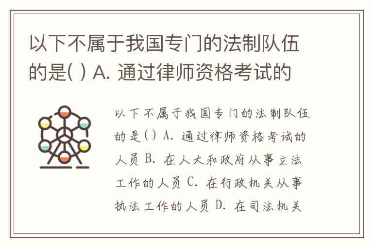 以下不属于我国专门的法制队伍的是( ) A. 通过律师资格考试的人员 B. 在人大和政府从事立法工作的人员 C. 在行政机关从事执法工作的人员 D. 在司法机关从事司法工作的人员