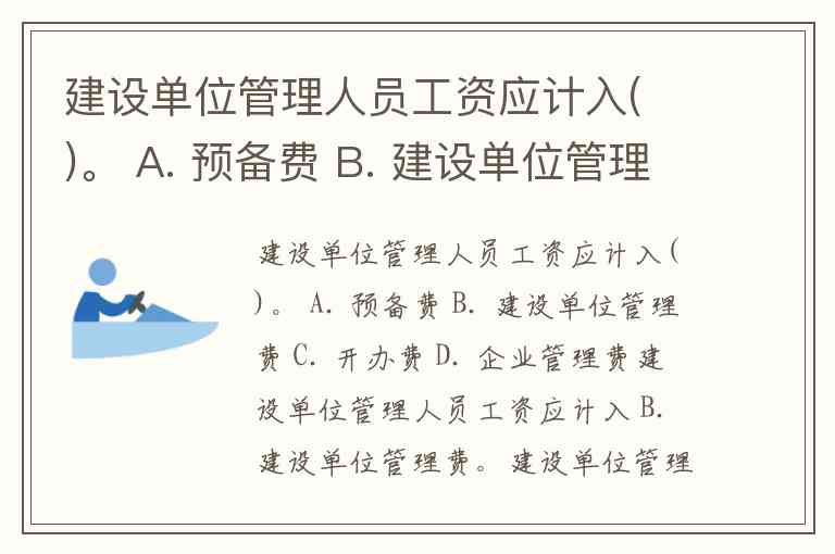 建设单位管理人员工资应计入( )。 A. 预备费 B. 建设单位管理费 C. 开办费 D. 企业管理费
