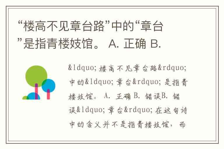 “楼高不见章台路”中的“章台”是指青楼妓馆。 A. 正确 B. 错误