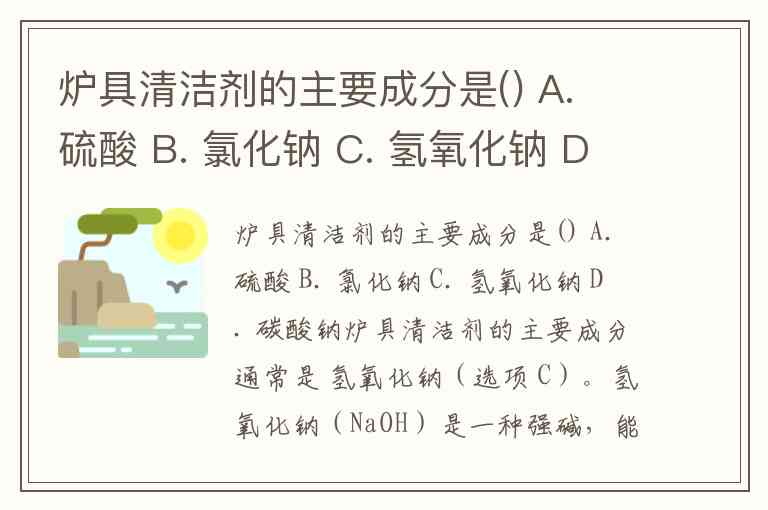 炉具清洁剂的主要成分是() A. 硫酸 B. 氯化钠 C. 氢氧化钠 D. 碳酸钠