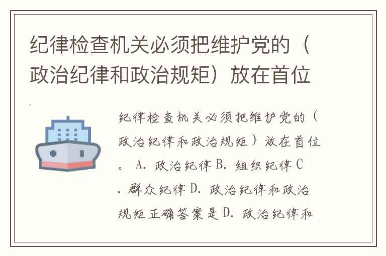 纪律检查机关必须把维护党的(政治纪律和政治规矩)放在首位。 A. 政治纪律 B. 组织纪律 C. 群众纪律 D. 政治纪律和政治规矩