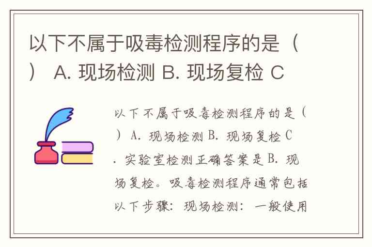 以下不属于吸毒检测程序的是() A. 现场检测 B. 现场复检 C. 实验室检测