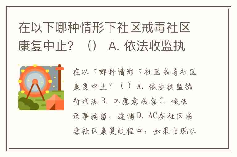 在以下哪种情形下社区戒毒社区康复中止?() A. 依法收监执行刑法 B. 不愿意戒毒 C. 依法刑事拘留、逮捕 D. AC