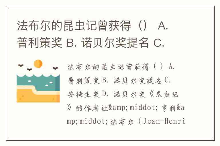 法布尔的昆虫记曾获得() A. 普利策奖 B. 诺贝尔奖提名 C. 安徒生奖 D. 诺贝尔奖