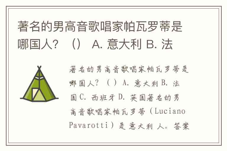 著名的男高音歌唱家帕瓦罗蒂是哪国人?() A. 意大利 B. 法国 C. 西班牙 D. 英国