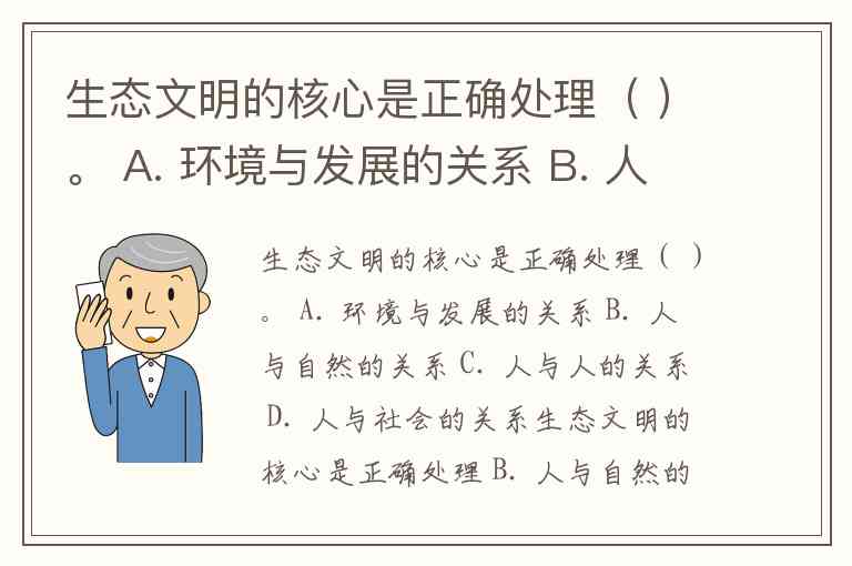生态文明的核心是正确处理 B. 人与自然的关系。