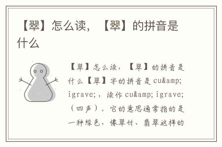 【翠】怎么读,【翠】的拼音是什么