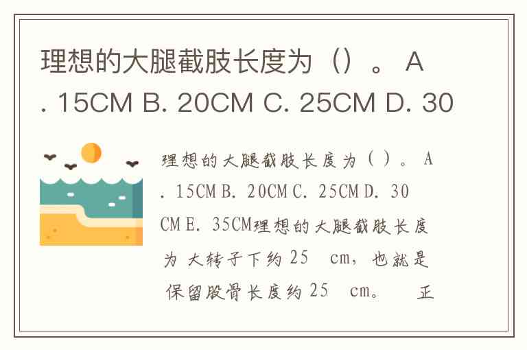 理想的大腿截肢长度为()。 A. 15CM B. 20CM C. 25CM D. 30CM E. 35CM