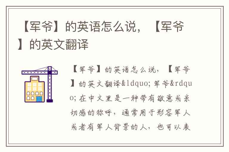 “军爷”在中文里是一种带有敬意或亲切感的称呼,通常用于形容军人或者有军人背景的人,也可以表示对某个军官的尊称。在英语中,可以根据具体上下文翻译为以下几种方式: