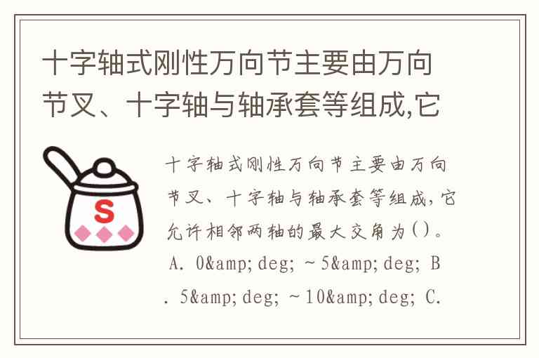 十字轴式刚性万向节主要由万向节叉、十字轴与轴承套等组成,它允许相邻两轴的最大交角为( )。 A. 0°~5° B. 5°~10° C. 10°~15° D. 15°~20°