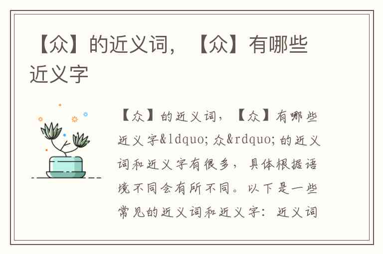 【众】的近义词,【众】有哪些近义字