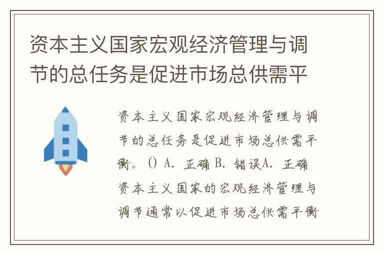资本主义国家宏观经济管理与调节的总任务是促进市场总供需平衡。() A. 正确 B. 错误