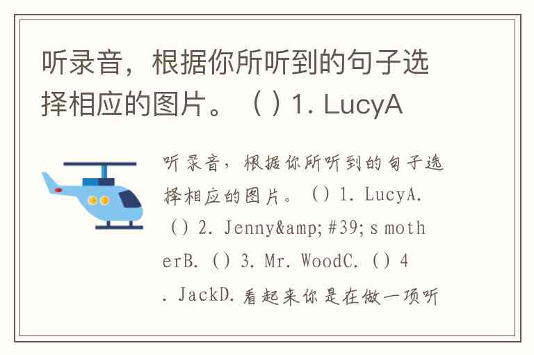 听录音,根据你所听到的句子选择相应的图片。 ( ) 1. LucyA. ( ) 2. Jenny's motherB. ( ) 3. Mr. WoodC. ( ) 4. JackD.