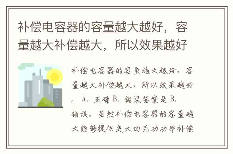 补偿电容器的容量越大越好,容量越大补偿越大,所以效果越好。 A. 正确 B. 错误