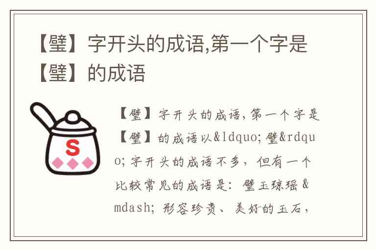 以“璧”字开头的成语不多,但有一个比较常见的成语是: