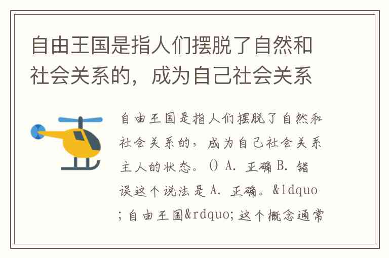 “自由王国”这个概念通常指的是一种理想状态,在这种状态下,人们摆脱了自然和社会关系的束缚,能够自主地支配自己的生活和社会关系。它强调人类完全的自由和自治,而不受外部压迫或限制。在某些哲学和政治理论中,如马克思主义和黑格尔的哲学中,“自由王国”被看作是人类最终实现自我解放的社会状态。