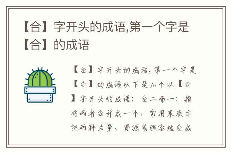 这些成语都含有"合"字,并且各自有不同的意思,可以根据具体语境来选择使用。你有喜欢的成语吗?