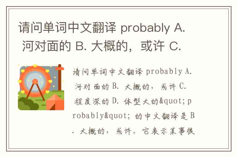 请问单词中文翻译 probably A. 河对面的 B. 大概的,或许 C. 程度深的 D. 体型大的