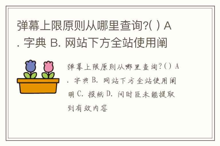 弹幕上限原则从哪里查询?( ) A. 字典 B. 网站下方全站使用阐明 C. 报纸 D. 问时臣
