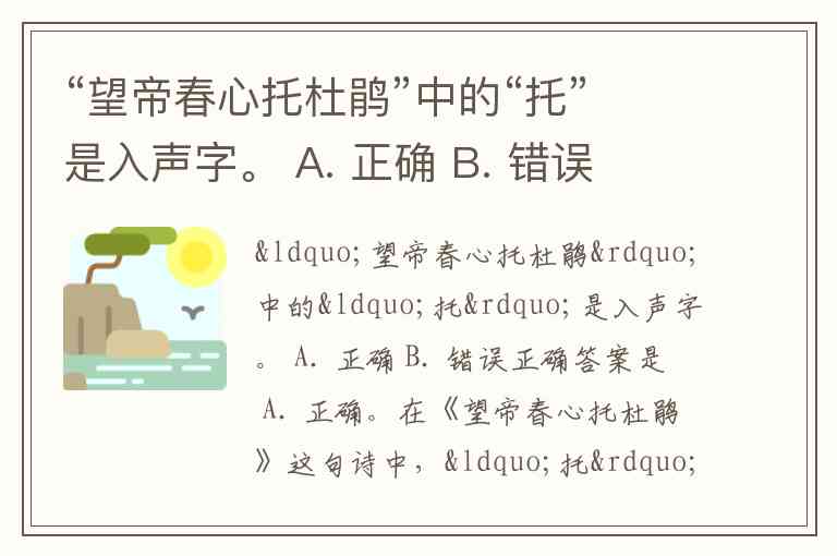 “望帝春心托杜鹃”中的“托”是入声字。 A. 正确 B. 错误