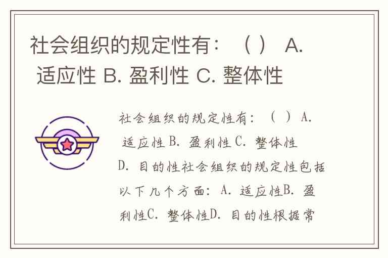 社会组织的规定性有:( ) A. 适应性 B. 盈利性 C. 整体性 D. 目的性