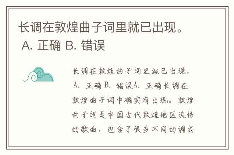 长调在敦煌曲子词里就已出现。 A. 正确 B. 错误