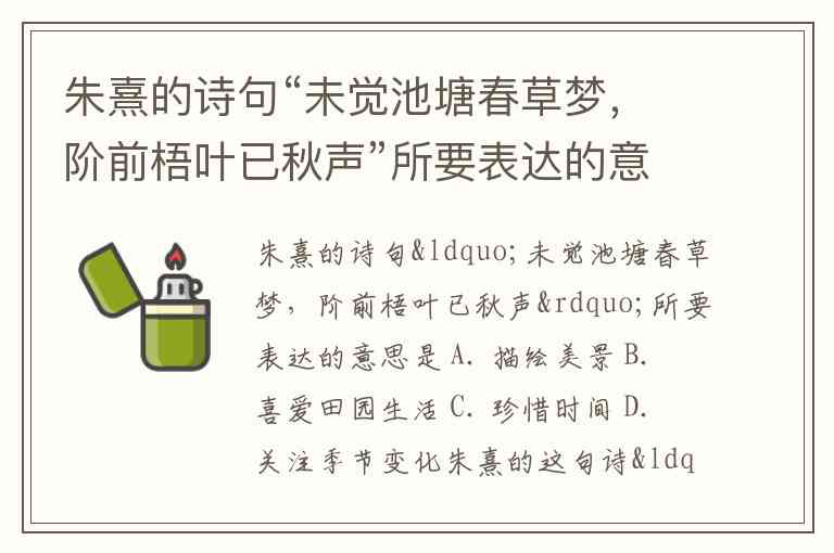 朱熹的诗句“未觉池塘春草梦,阶前梧叶已秋声”所要表达的意思是 A. 描绘美景 B. 喜爱田园生活 C. 珍惜时间 D. 关注季节变化