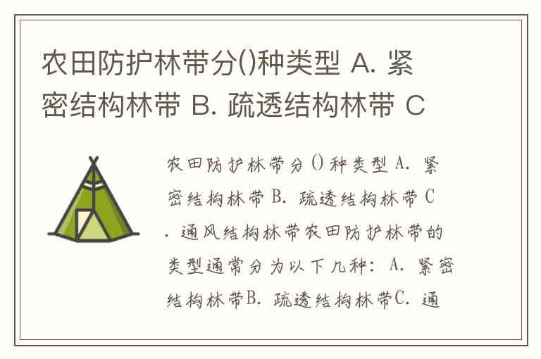 农田防护林带分()种类型 A. 紧密结构林带 B. 疏透结构林带 C. 通风结构林带