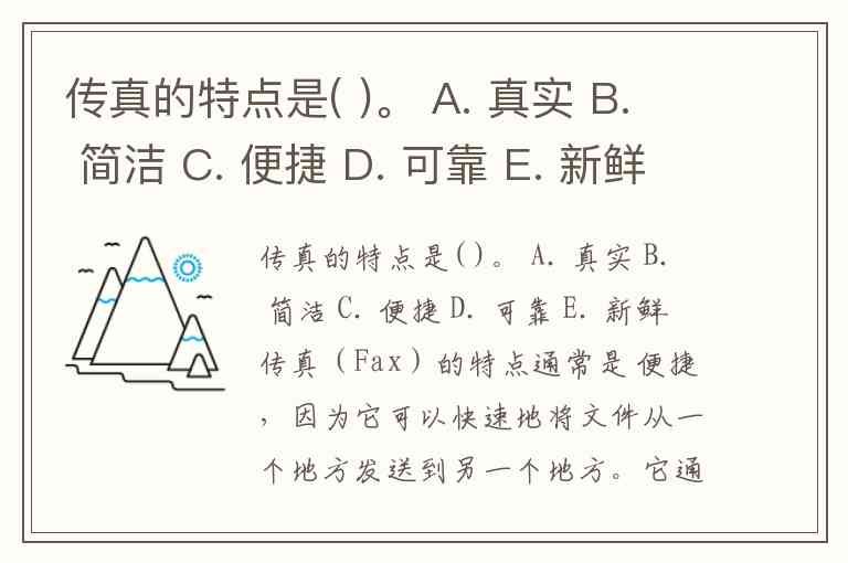 传真的特点是( )。 A. 真实 B. 简洁 C. 便捷 D. 可靠 E. 新鲜