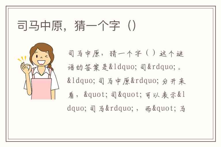 “司马中原”分开来看,"司"可以表示“司马”,而"马"在谜语中可能是个提示,直接对应字谜中的“司”字。