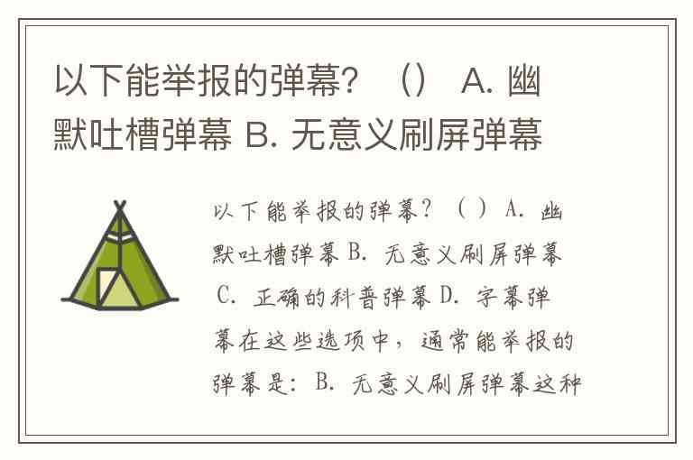 以下能举报的弹幕?() A. 幽默吐槽弹幕 B. 无意义刷屏弹幕 C. 正确的科普弹幕 D. 字幕弹幕