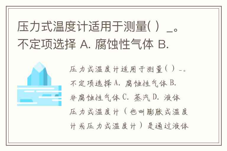 压力式温度计适用于测量( )_。不定项选择 A. 腐蚀性气体 B. 非腐蚀性气体 C. 蒸汽 D. 液体