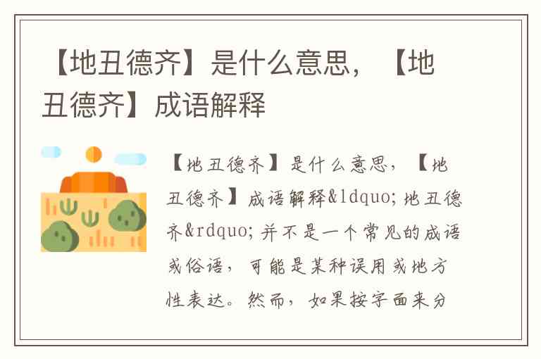 “地丑德齐”并不是一个常见的成语或俗语,可能是某种误用或地方性表达。然而,如果按字面来分析,可以从字面意思去理解: