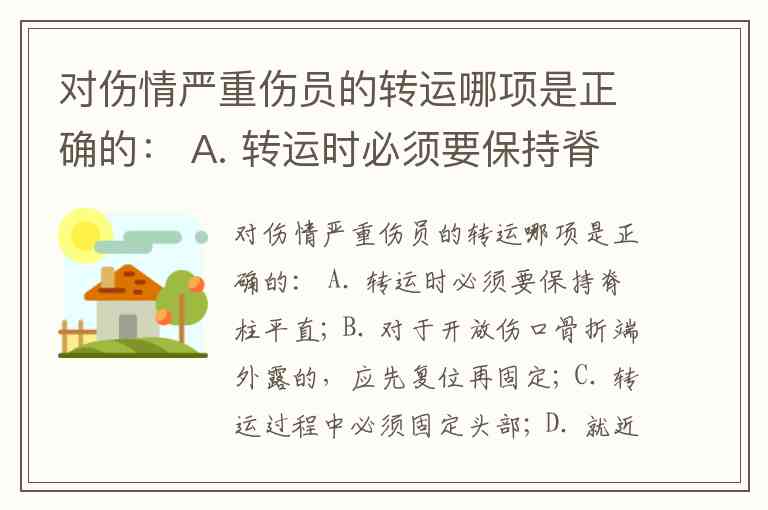 我们来逐项分析题目,题目是关于 伤情严重伤员的转运,考察的是急救原则和注意事项。