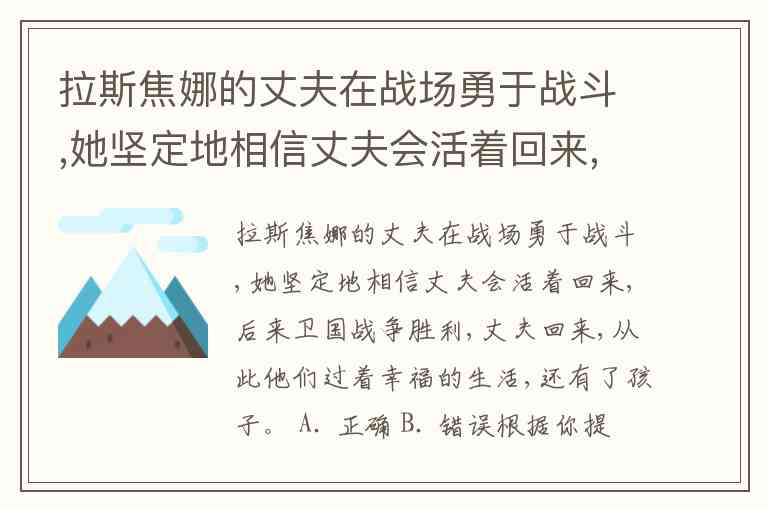 拉斯焦娜的丈夫在战场勇于战斗,她坚定地相信丈夫会活着回来,后来卫国战争胜利,丈夫回来,从此他们过着幸福的生活,还有了孩子。 A. 正确 B. 错误