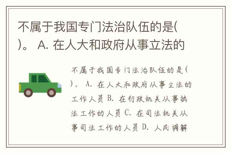 不属于我国专门法治队伍的是( )。 A. 在人大和政府从事立法的工作人员 B. 在行政机关从事执法工作的人员 C. 在司法机关从事司法工作的人员 D. 人民调解员