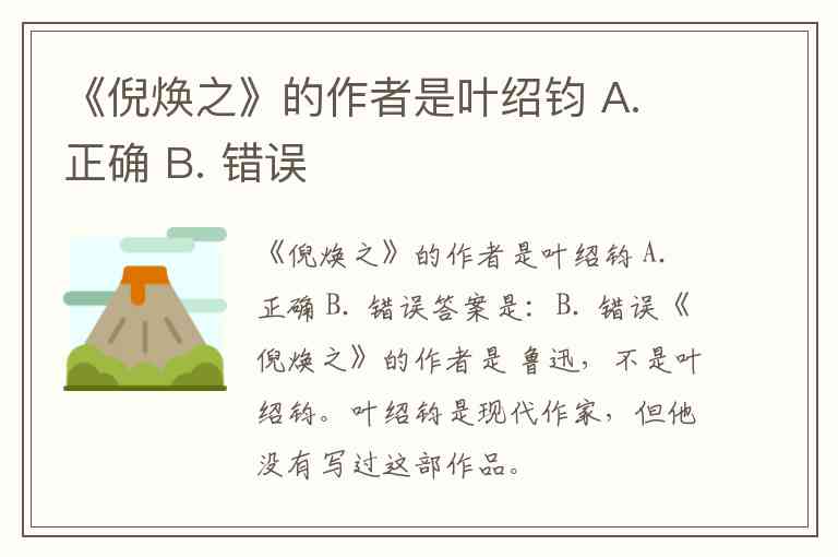 《倪焕之》的作者是叶绍钧 A. 正确 B. 错误