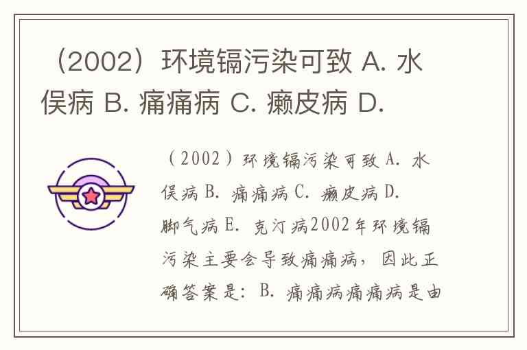 2002年环境镉污染主要会导致痛痛病,因此正确答案是: