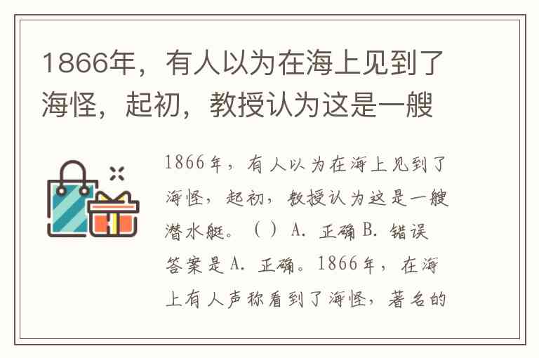 1866年,有人以为在海上见到了海怪,起初,教授认为这是一艘潜水艇。() A. 正确 B. 错误