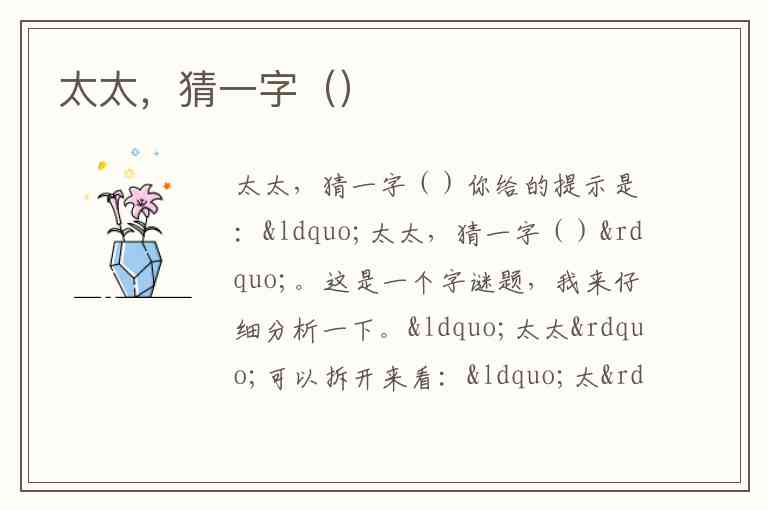 你给的提示是:“太太,猜一字()”。这是一个字谜题,我来仔细分析一下。