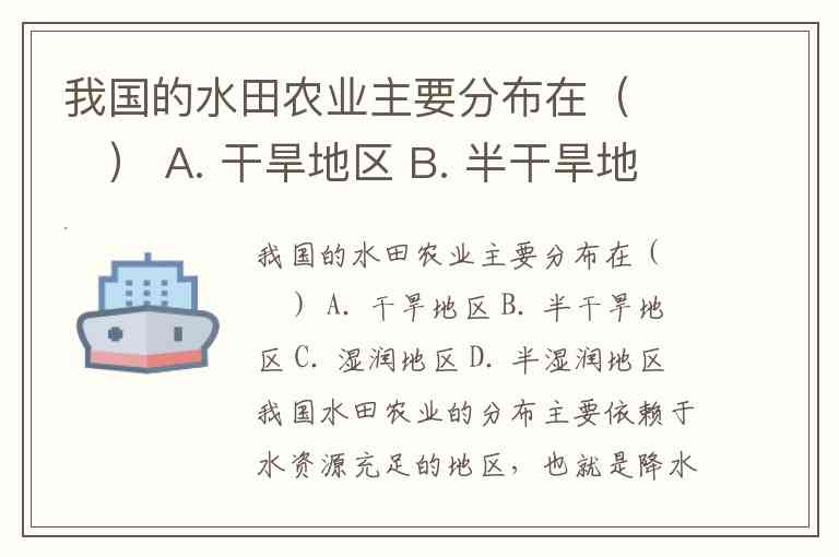 我国的水田农业主要分布在( ) A. 干旱地区 B. 半干旱地区 C. 湿润地区 D. 半湿润地区