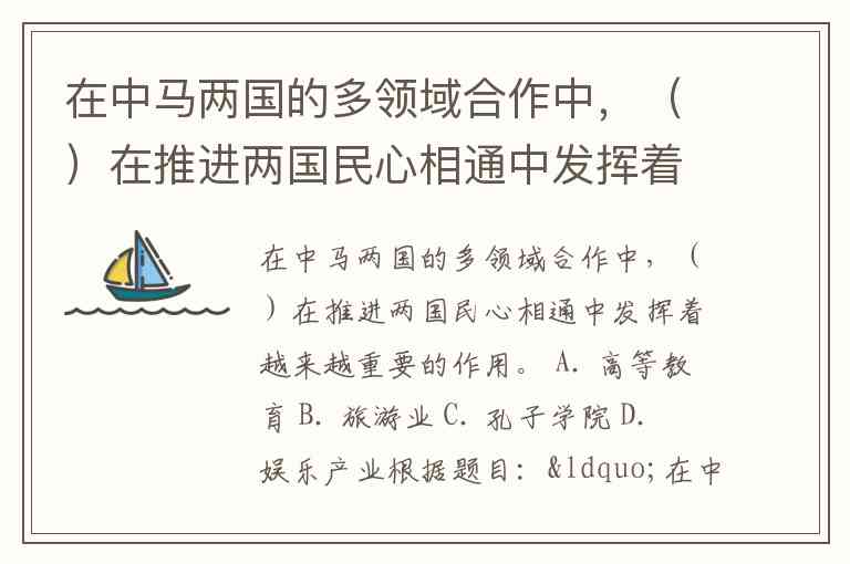 在中马两国的多领域合作中,()在推进两国民心相通中发挥着越来越重要的作用。 A. 高等教育 B. 旅游业 C. 孔子学院 D. 娱乐产业