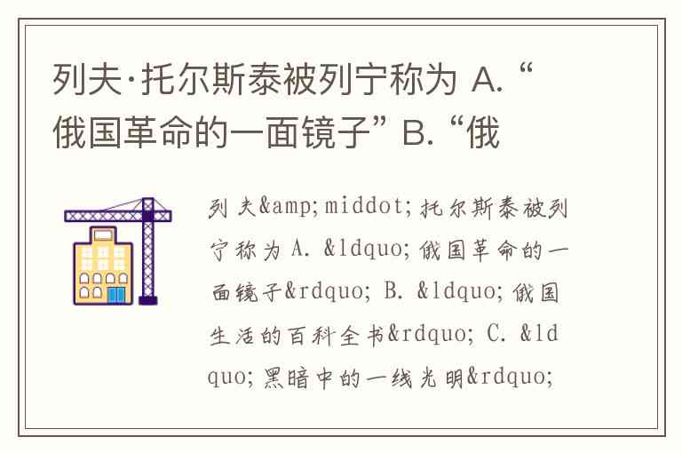 列宁曾经称列夫·托尔斯泰为**“俄国革命的一面镜子”**,所以正确答案是 A。