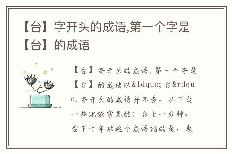 以“台”字开头的成语并不多,以下是一些比较常见的: