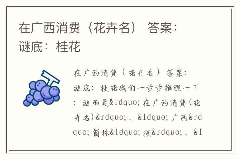 谜面是“在广西消费(花卉名)”。“广西”简称“桂”。