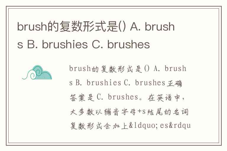 brush的复数形式是() A. brushs B. brushies C. brushes