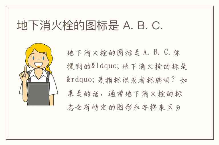 你提到的“地下消火栓的标是”是指标识或者标牌吗?如果是的话,通常地下消火栓的标志会有特定的图形和字样来区分其位置和功能。